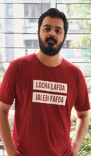 Supertalented director Jai Mehta in Scam 1992 merchandise.